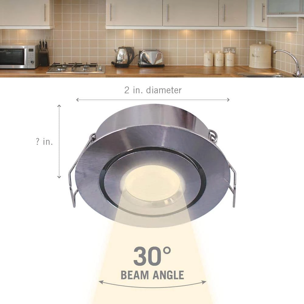 This bright, 2 in. low-voltage LED light uses only 3-Watt making it a great solution for installations where a slim profile, recessed spotlight is required. Integrated diffuser softens the light and eliminates glare on adjacent surfaces. Requires a 12-Volt DC power supply (sold separately). Sold individually.