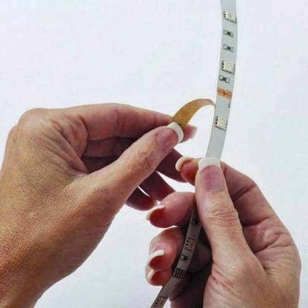 RibbonFlex Pro Custom Color RGB LED tape lighting transforms spaces like no other lighting can. Add creative color lighting to tray ceilings, coves, under cabinets, architectural elements and more. High performance RGB LEDs can produce an endless array of colors including shades of white making it exceptionally versatile for creative accent lighting. Use a color controller to select a static color and brightness level of your choice, or create color changing scenes and effects. Ultra thin and flexible (measuring just over 3/8 in. W by 1/8 in. T), it works where other lighting can’t. Designed for custom installations, RGB LED lighting is highly configurable and can be cut to size every 4 in. or easily linked together to create longer lengths of lighting. 3M high-bond adhesive tape backing makes installation as easy as peel-and-stick. Requires an RGB LED controller and a 12-Volt DC power supply, each sold separately.