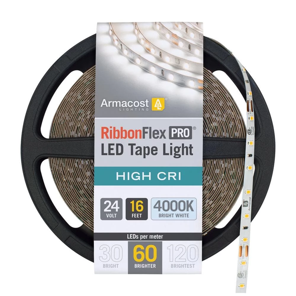 Featuring a 90 plus Color Rendering Index (CRI) rating, the Ribbon Flex Pro 24-Volt Premium CRI White LED Tape Light from Armacost Lighting ensures high-quality, vivid lighting in applications where accurate color presentation is important. High CRI means higher color quality, High CRI LED strip lights will show an object or environment in its true, pure and vibrant color. In the home it creates a natural, comfortable feel, which is especially ideal for LED strip light installations in the kitchen under counters, cabinets, or shelves. These specialty tape lights are also best used for photographers, displays, grocery stores, retailers, and galleries. CRI is calculated as a value with a maximum possible score of 100. A high CRI score of 90 or above indicates that a light source will make objects appear very similar to how they would look under the natural lighting of the sun.