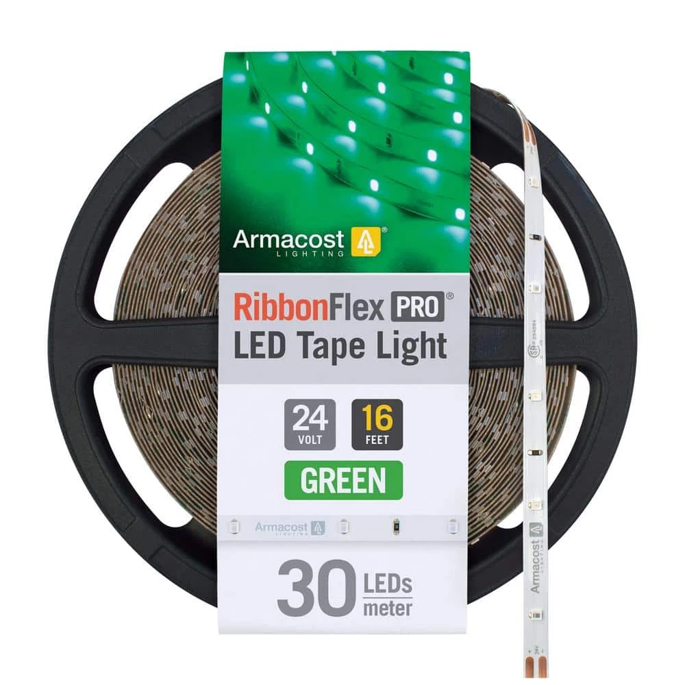 RibbonFlex Pro 24V Single Color LED Strip Light Tape from Armacost Lighting delivers a dedicated single color display, ideal for commercial displays, signage, safety lighting, and creative home decor projects. Featuring 30 ultra-bright LEDs per meter, it is the perfect LED strip light for a subtle accent light. Install the adhesive 24 V LED strip lights in a bar, restaurant, event space, dark room, or home. The vibrant colors can also be used for holiday decor and safety/courtesy lighting.