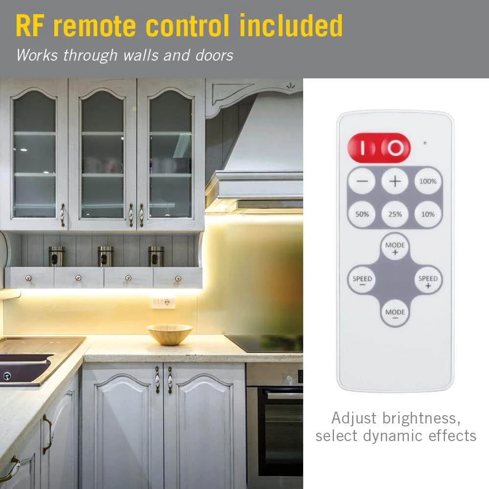 - Radio frequency (RF) technology enables control through walls and cabinets without requiring line of sight