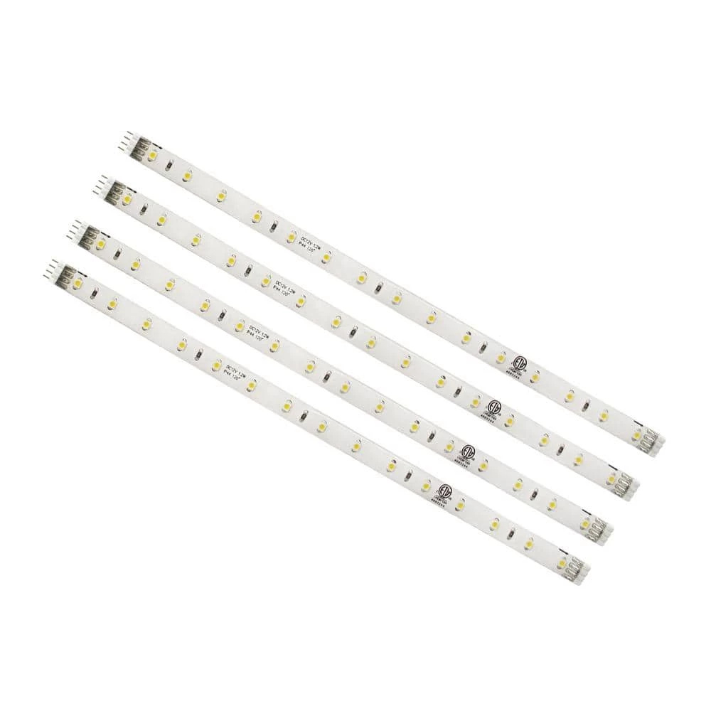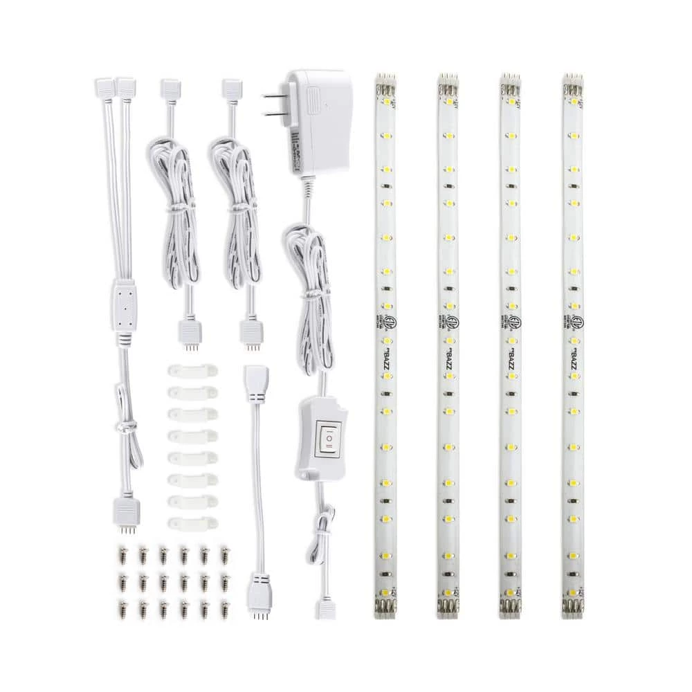 BAZZ 4 pack of 10 in. each LED strips, linkable up to 8 units. Light output is 100 units per strip. Watt output is 1-Watt per strip. Ideal in the kitchen, under shelves or in a closet, this versatile under cabinet lighting fixture is easy to install and will add a touch of accent light to your interiors.