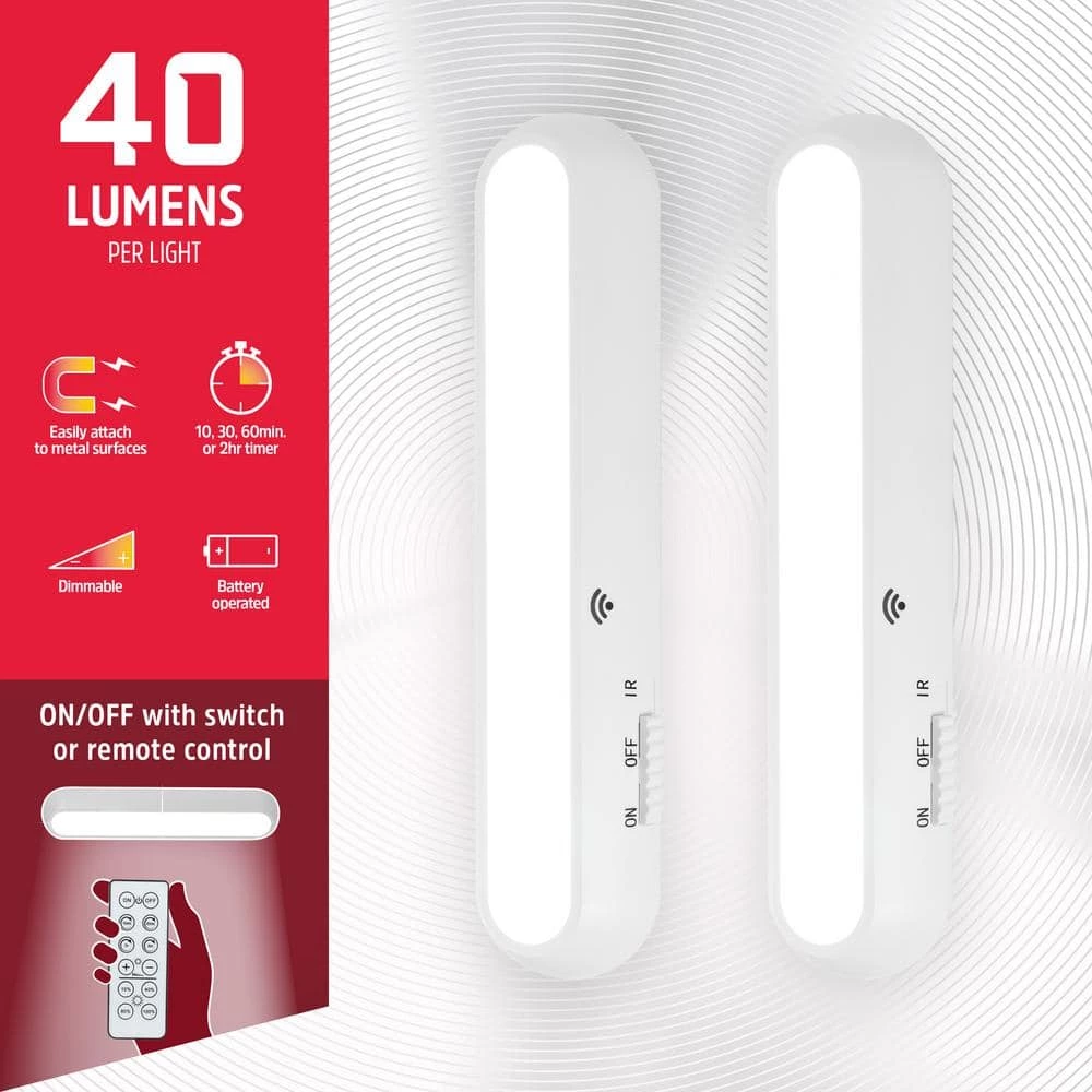 A little light goes a long way with the Energizer LED Mini Light Bar 2-pack. Successfully mixing substance and style, the battery powered LED provides 40 Lumens of white light where you need it the most. Its minimalistic design makes it perfect for renters and homeowners alike. Mounting hardware is included for easy installation in the area of your choice. Bring light where it belongs with the Energizer LED Mini Light Bar 2-pack.