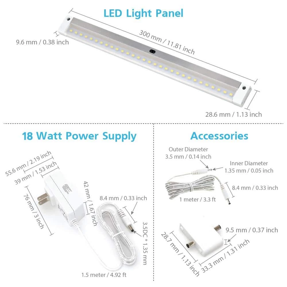 Discover Dimmable Hand Wave Activated LED Lighting with This 4-Bar Under-Cabinet LED Lighting Kit. With 4 LED bars, a 18-Watt power supply and a full complement of screws, wire clips and stickers, you’ll have everything you need to install warm, energy-saving light in your kitchen, pantry, garage, office, workshop, RV and more. Wave Your Hand: That’s all it takes to turn on or off your lights, hold your hand under the sensor, you can adjust brightness from 10% to 100%. Quick Install: For the quickest and lowest profile install, simply use the included double-sided stickers. Whether you want to install all 4 lights together in a chain or spread them further apart beneath your cabinets, this kit includes everything you’ll need.