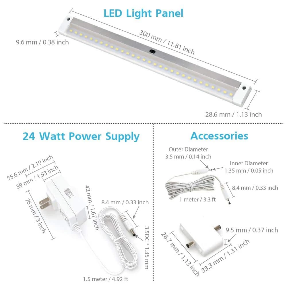 Discover Dimmable Hand Wave Activated LED Lighting with This 6-Bar Under-Cabinet LED Lighting Kit. With 6 LED bars, a 24-Watt power supply and a full complement of screws, wire clips and stickers, you’ll have everything you need to install warm, energy-saving light in your kitchen, pantry, garage, office, workshop, RV and more. Wave Your Hand: That’s all it takes to turn on or off your lights, hold your hand under the sensor, you can adjust brightness from 10% to 100%. Quick Install: For the quickest and lowest profile install, simply use the included double-sided stickers. Whether you want to install all 6 lights together in a chain or spread them further apart beneath your cabinets, this kit includes everything you’ll need.