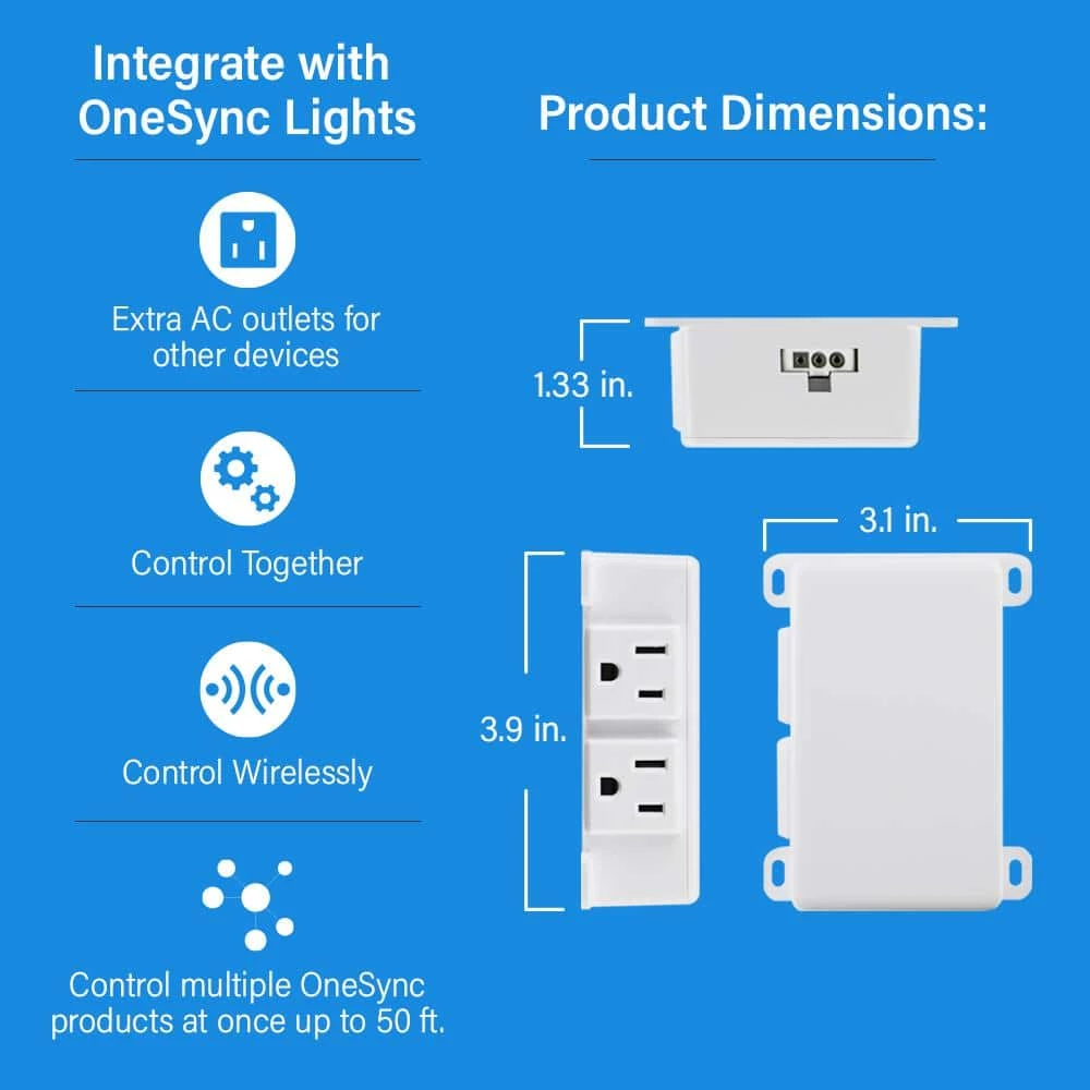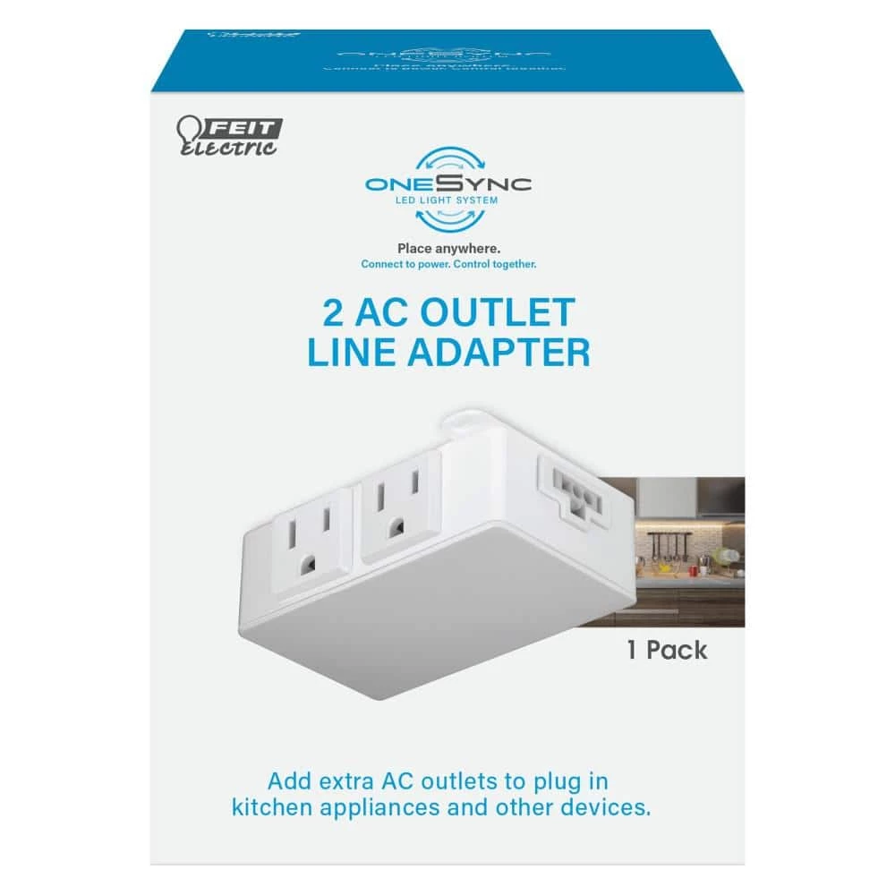 This Feit Electric UCL/PLUG is a 2 in-line AC outlet with a 18 in. link cable that will work with your Onesync under cabinet lighting. Keep your kitchen well lit and never worry about running out of outlet space with this dual AC outlet line adapter. Simply place your OneSync undercabinet lights where you want them, and connect to the outlet line adapter. Use the extra-AC outlets for all your other devices. Each plug with an 18 in. cable and easily pairs with other Feit Electric undercabinet lights and accessories. Choose a dependable Feit Electric Onesync under cabinet fixture for your lighting needs.