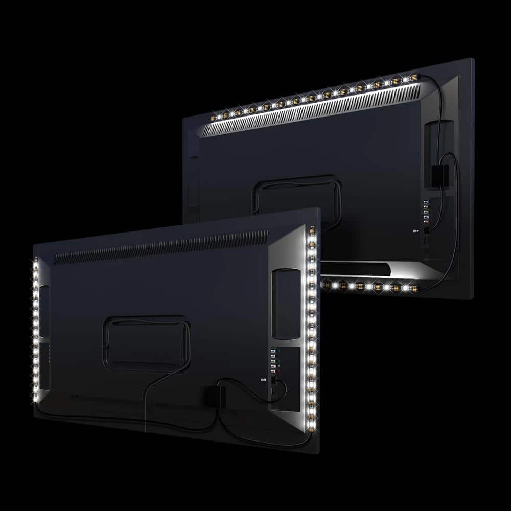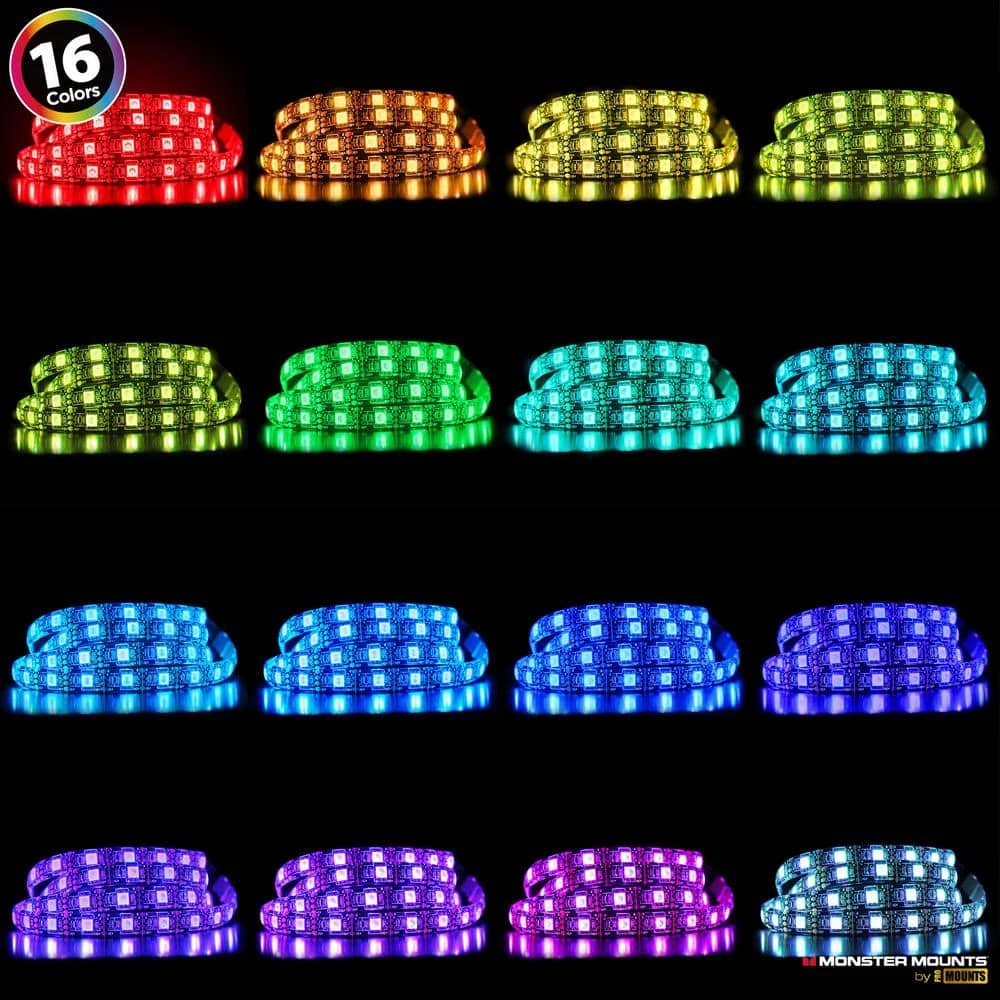 Give your TV an edge and reduce eye strain with the MTB02 LED TV Backlight Kit from Monster Mounts. The MTB02 is a LED backlight kit that attaches to the back of your TV. The MTB02 works with both freestanding and mounted TVs and can be plugged into the back of your TV directly via a USB port. This allows for the lights to be turned on and off with your TV. The MTB02 has 16 color options and 4 dynamic themes, allowing you to express yourself, all while helping reduce eye strain when in dim lighting situations. Included in the box is an easy to understand user manual with images that demonstrate every step needed.