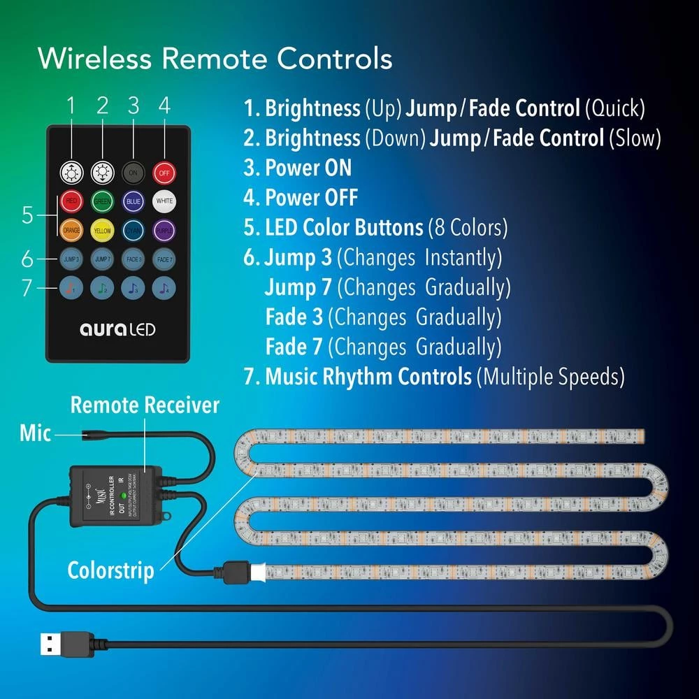- Remote controlled: use the included remote (from up to 26 ft. away) to customize your choice of 8 colors and 4 mood light settings, adjust the intensity and brightness to suit your atmosphere and create the perfect ambiance