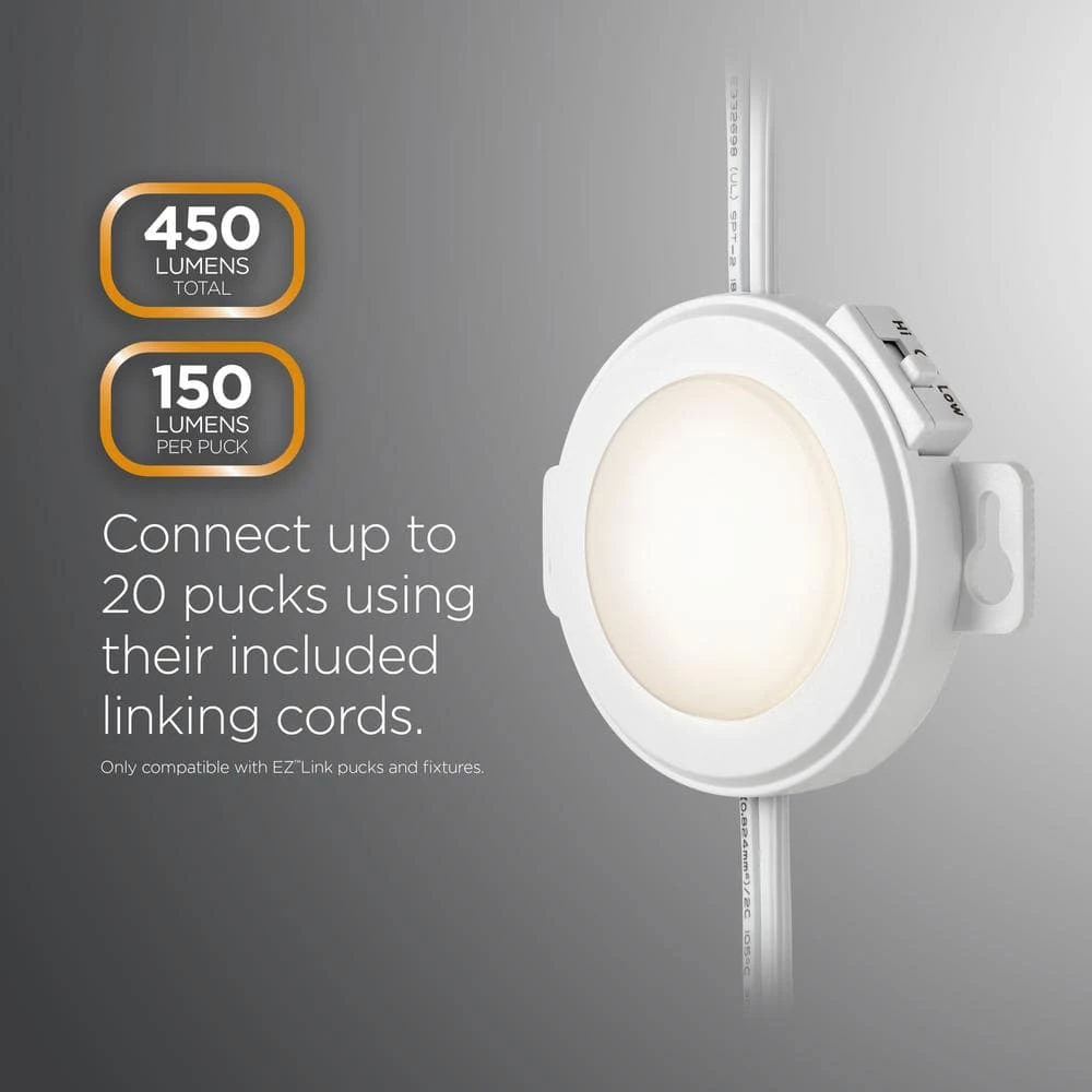 Create your own lighting setup with this set of 3 Ultra ProGrade EZ Link Linkable LED Puck Lights. Each puck is sleek, lightweight and high-quality. Providing a total 450 Lumens of illumination, you will be impressed at how much these lights improve the look of your space. These pucks also let you adjust the brightness levels to match your preference – all with the flip of a switch. All the mounting hardware you need for installation comes included inside of the box. You can customize your space even further by linking additional sets of pucks together. Conveniently connect up to 20 pucks to each other with their included 5 in. linking cords. Improve upon your setup by converting the pucks to direct wire using the Ultra ProGrade ProLink Direct Wire Converter (#55229, sold separately). The perfect fit for kitchens, office spaces, workbenches and more, your set of 3 Ultra ProGrade EZ Link Linkable LED Puck Lights will light your home for life.
