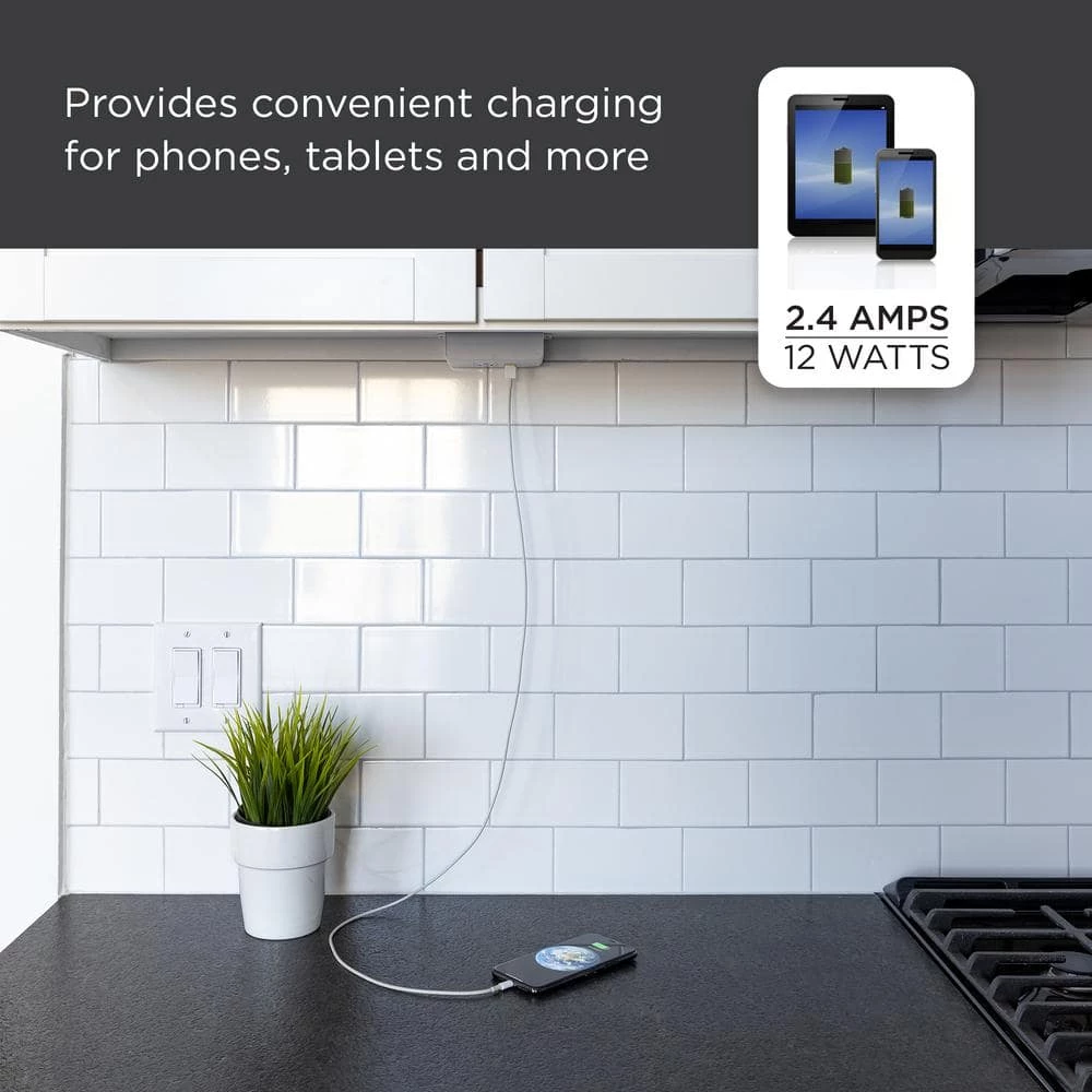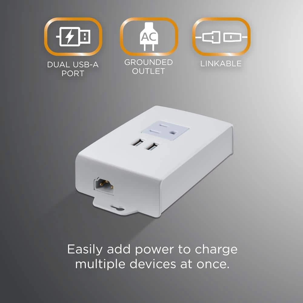 Upgrade your own personal lighting system by installing the Ultra ProGrade ProLink In-Line Outlet with USB Charging. This intuitive add-on pairs with your compatible ProLink light fixtures, creating an incredible level of control and customization. When connected to your existing setup, you can use the two USB-A charging ports to power up devices like phones, tablets and more. And of course, this module features a 10-A, easy-access receptacle for additional electronics-eliminating the need to strain for other outlets that are simply out-of-reach. Convenience is the future of lighting that ProLink offers, and this extends to installation. All the mounting hardware you need comes ready to go inside of the box. After using the included screws to mount the in-line outlet next to your LED setup, you can easily use the linking and power cords provided with each fixture or puck to connect everything together. When you upgrade your lighting system by using the Ultra ProGrade ProLink In-Line Outlet with USB Charging, you can enjoy premium, high-tech benefits from your own home.