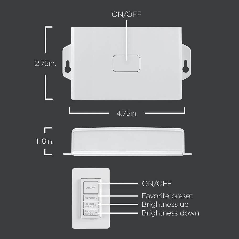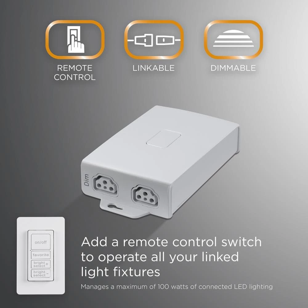 - Remote control switch – use the remote to effortlessly manage your entire setup with an ON/OFF button, full-range dimming and a favorite mode that remembers your preferred brightness level