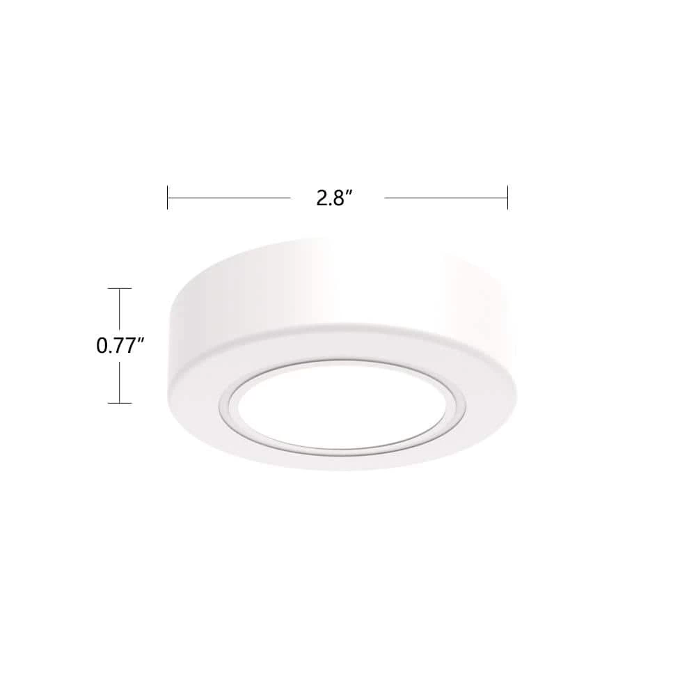 3-Light White LED Puck Light Kit, 5-pack is available as well, sold separately. LED light provides even light distribution, warm white light with a cool operating temperature. The AC LED module is built inside the puck light, no transformer and extra wires for easy installation.