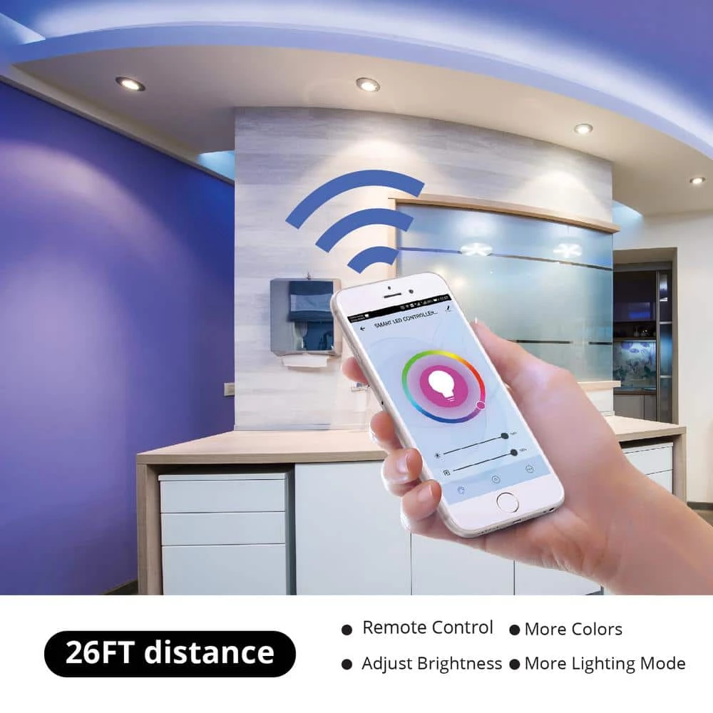 Color-changing LED lighting for instant ambiance in one simple to set-up kit. Everything you need to add drama to a medium to large space. Use LED strips below kitchen counters, underneath a bar, or behind your TV or desk monitor.