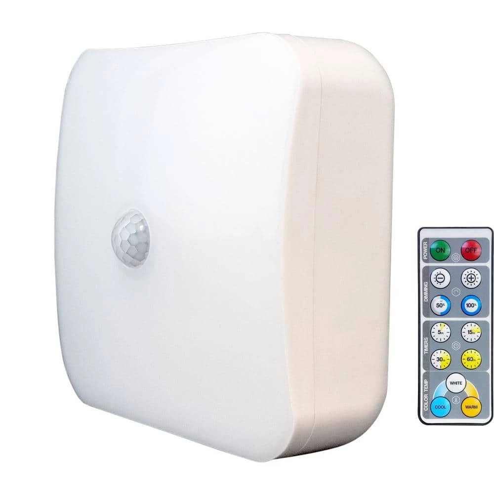 The Dual Activated Adjustable White Ceiling Light features 3 color temperatures of 3000K (warm), 4000K (natural) and 5000K (cool) white light. Active and control this light with the included remote and choose whether the products is activated by motion or remote. add light to closets, pantries, laundry rooms, garages, sheds and more.