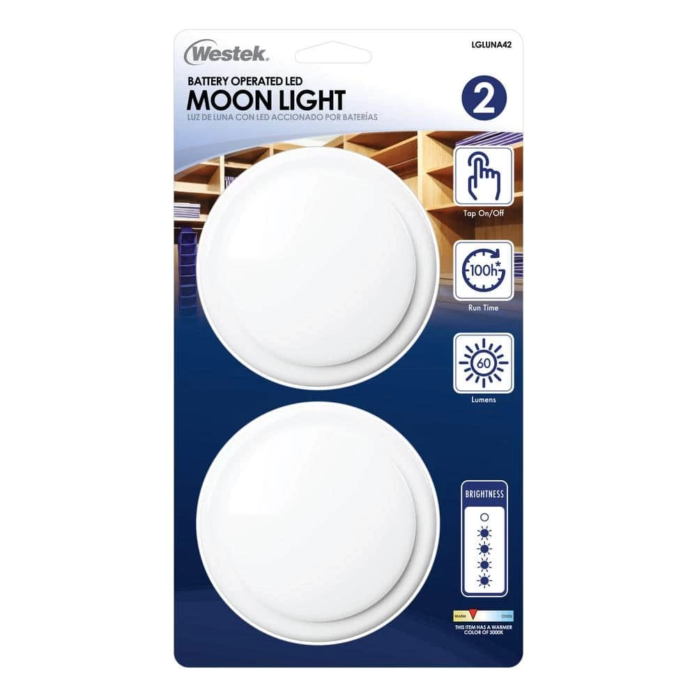 The Westek LGLUNA42 LED Moon Light is the perfect way to add illumination to any space. This device turns on with a tap and gives off 30 Lumens of warm white illumination. Great for work spaces, bedrooms, hallways, entryways, basements, bathrooms and more. Works on a tabletop or mounted on a wall. This device is powered by 3 AA batteries (not included) and has a run time of 100-hours. Designed with a modern style that works with any decor. AmerTac manufacturing brands offer complete lines of distinctive decorative home accent products that include trend-setting wall plates, money saving LED night lights, innovative under cabinet lighting and LED battery operated lights. More functional product lines include energy-saving timers, dimmers and lighting controls, as well as an extensive offering of consumer electronics accessories for the home and office. AmerTac’s products are distributed to leading home centers, lighting showrooms, mass merchandisers and supermarket chains throughout North America.