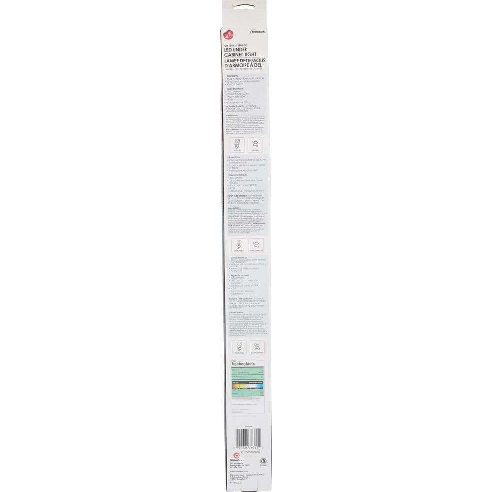 - LED UNDER CABINET LIGHT – provides 420 lumens of warm white light with a compact design that makes it the perfect choice for under a cabinet, over a workspace or in a closet